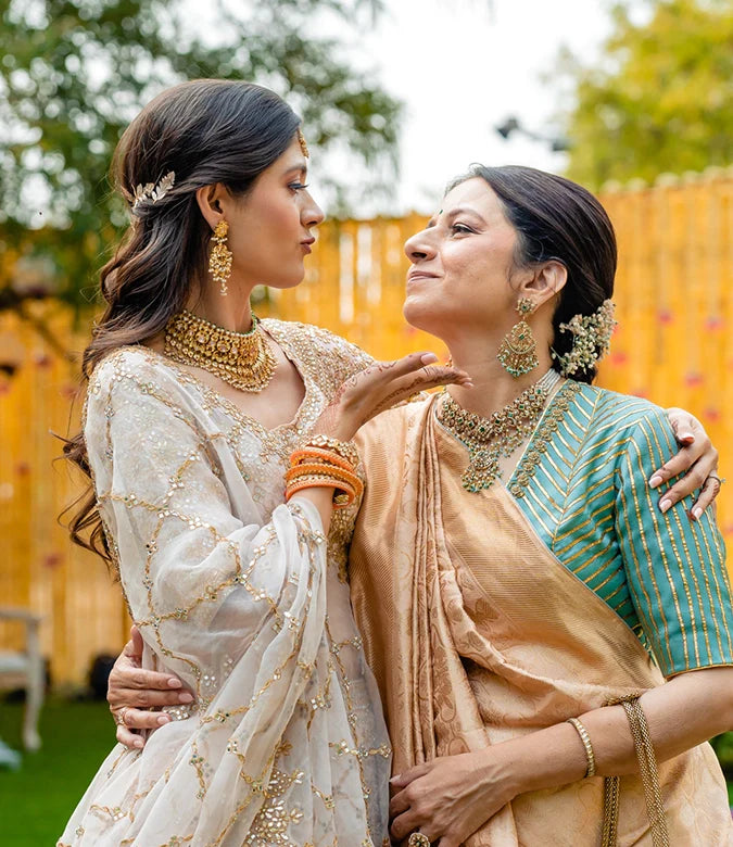 "The lovely bride Tanisha with her mum Vinita. Both wearing their Aurus for Tanisha's wedding!"