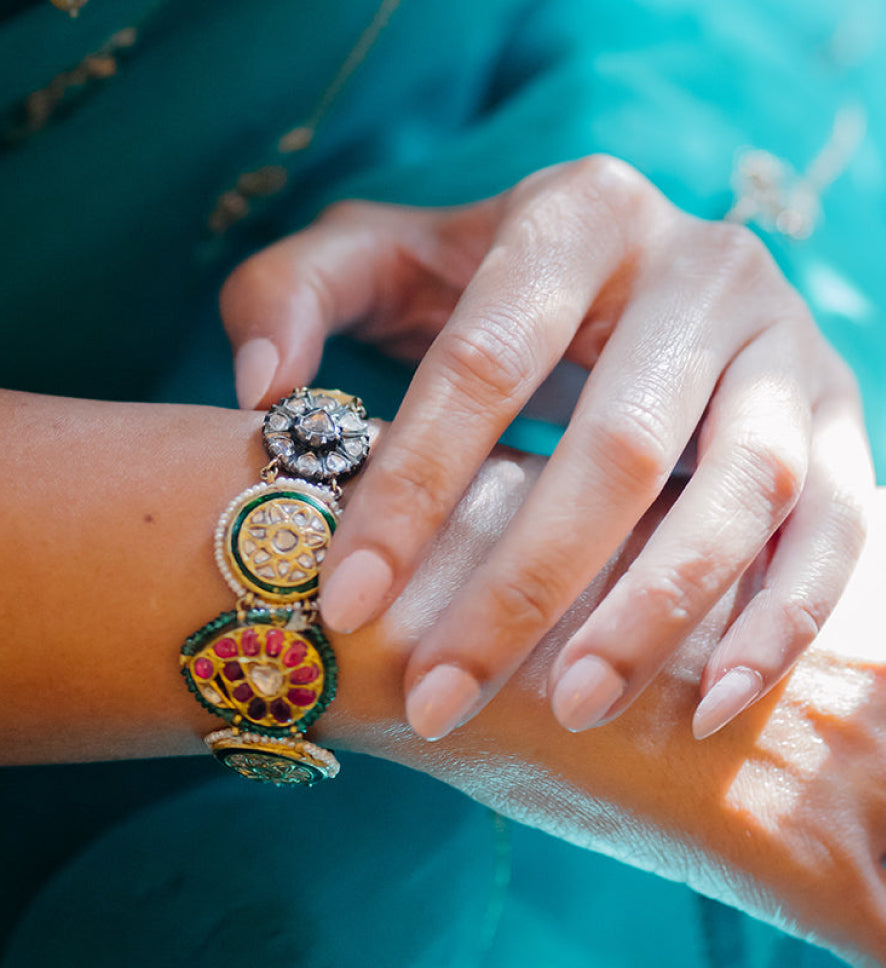 Puja's journey with art and design started when she worked at the Metropolitan Museum of Art and the Brooklyn Museum of Art in New York where she discovered India’s incredible heritage in crafts, materials and techniques in the meticulously catalogued displays at both these museums and the groundbreaking show at the MET around the Mughal Jewels now owned by the al-Sabahs, the ruling family of Kuwait.This tempered with her formal training in Jewelry Design at the Fashion Institute of Technology, New York honed a fine balance between practiced design and a historical reference.