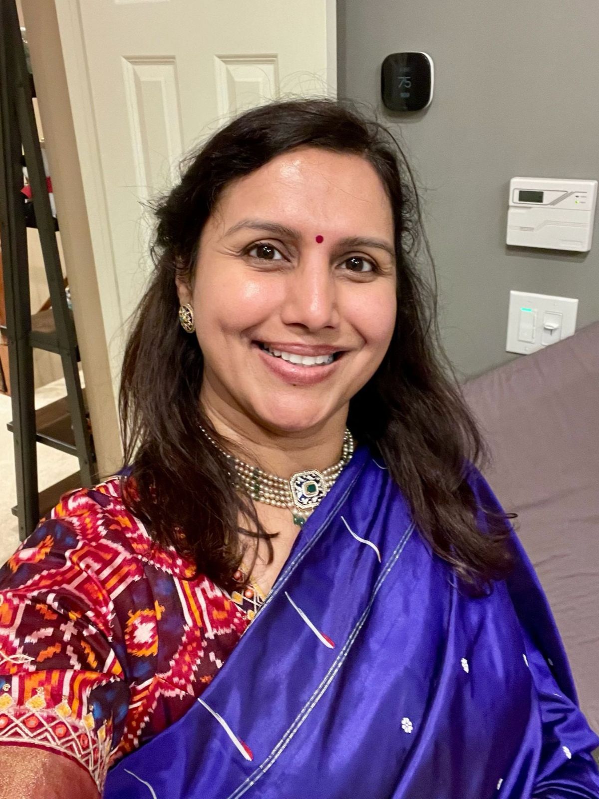 The elegant Dr. Kalpana Jain in her custom Saira Necklace and Ananya Jhumka Earrings.