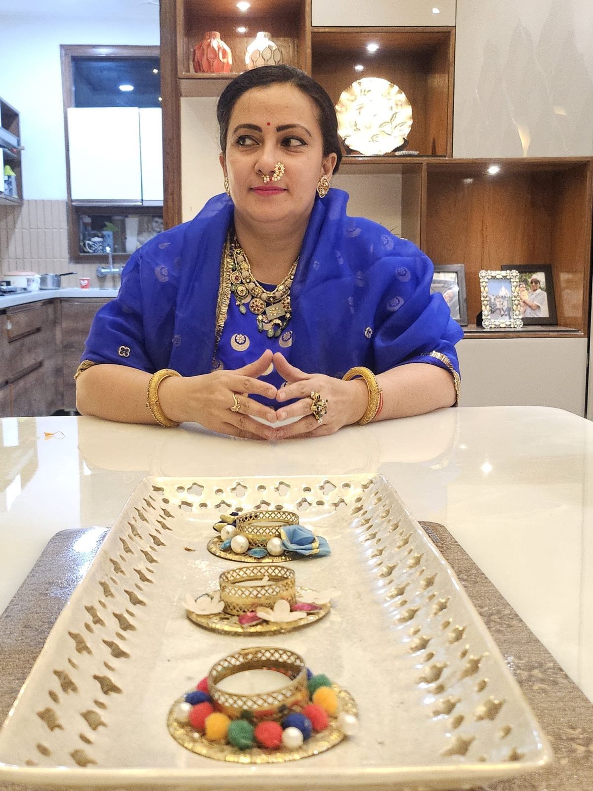 Samir Gandhi's wife, Trupti Gandhi, lovingly gifts her daughter-in-law our Kalki Hasli.