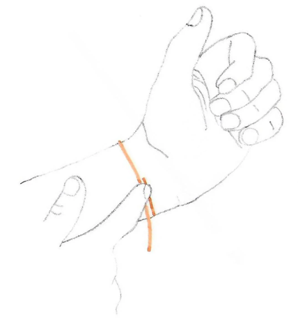 Measure the length of thread with a ruler and use the following chart to determine your bracelet size.